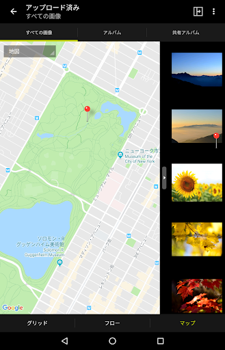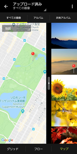 ・3つのビュー(グリッド/フロー/マップ)を切り換えて、好みに合った表示で写真を見られます。