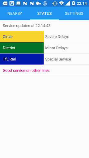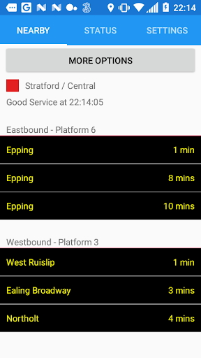 Next Tube displays live information from a few nearby Tube, DLR, London Overground and TfL Rail stations based on your current location, ideally, in London (UK). It also provides the status of the whole tube network.