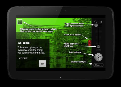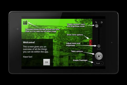 Night Vision Camera simulates the Effect of Night Vision Goggles on your phone.