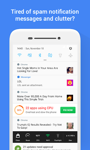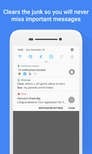 あなたはあなたの携帯電話を散らす迷惑なスパム通知メッセージにうんざりしていますか?ジャンクアウト通知スパムブロッカーとクリーナークリアので、あなたは決してミス重要なメッセージ二度と!