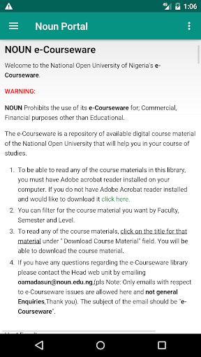 NOUN Student Portal for easy access to the course registration & other info.