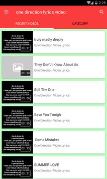 ONE DIRECTION VIDEO LIRYCS application contains the latest song from ONE DIRECTION video. You can enjoy videos with lyrics from One Direction.