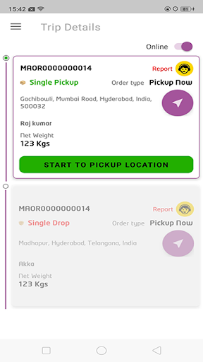タコプラットフォームに添付され登録されているドライバは、このアプリケーションを使用して、それらに割り当てられている旅行を承り、それらの収益を見ることができます。