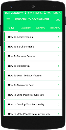 Personality developement is so important that one's success depends on it. And our application gives all handy tips to develop a better personality in you.