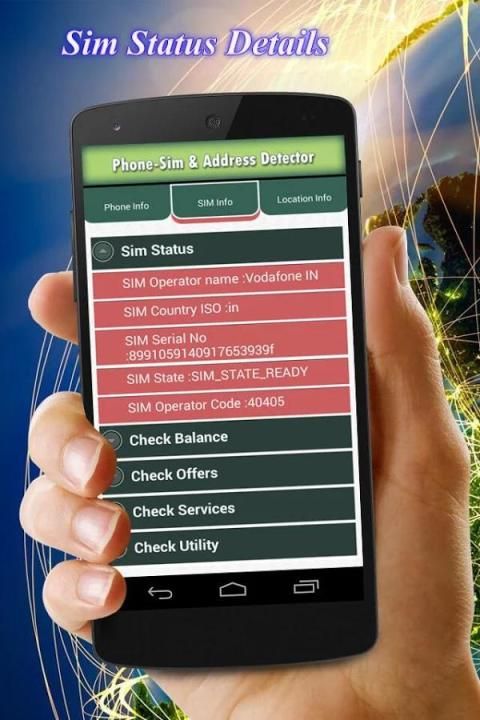 ► SIM card and network details like subscriber id, SIM operator, SIM serial no, SIM operator name, network operator, network type will be available to you.