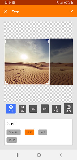 機能を使用して不要な部分を削除する画像のうち、Facebook、Instagram、Pinterestなどさまざまなソーシャルメディアのためにあなたの写真を調整するために利用可能なさまざまなアスペクト比の間で選択します。