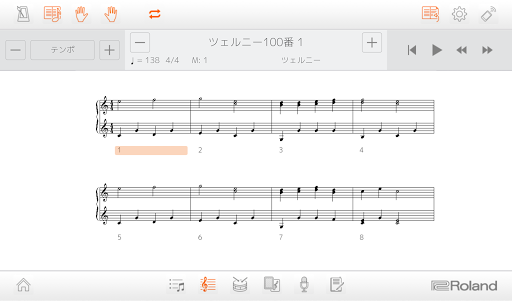 2. ローランドのデジタルピアノの内蔵曲を譜面表示できる「デジスコア・ライト」。伴奏データと一緒に演奏が楽しめます。