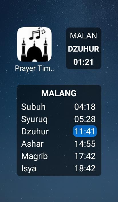 This widget to display the location you choose and also the prayer times in a day
