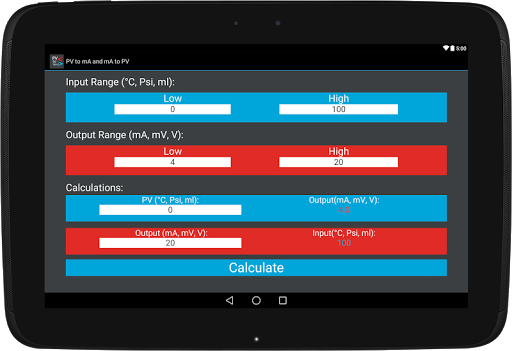 ステータスインスツルメンツのプロセス信号値を任意のエンジニアリング単位で変換するための無料アプリ、ミリアンペア、ミリボルト、またはボルトの制御信号に。