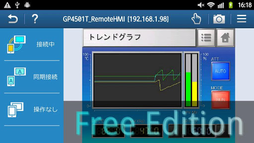製造装置等に組み込まれているタッチパネル表示器GPシリーズの画面を、スマートフォンやタブレット上でリモート表示/操作ができるアプリケーションです。
