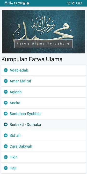 - Kitab para ulama (Arbain Nawawi, Bulghul Maram dll)