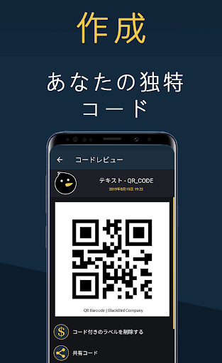 次の種類のQRコードをすばやく作成します:テキスト、電話番号、モバイルメッセージ、リンク、イベント、Wi-Fi、GPS、meCard名刺、vCard名刺、インストールされているアプリケーションに関する情報など。