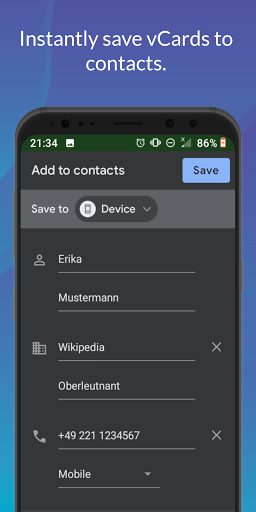 ユーザー認証でデバイス上の連絡先に自動的に保存されます。