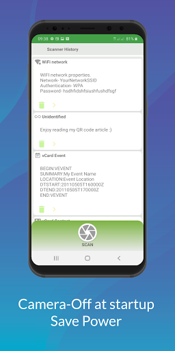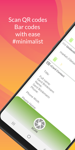 Minimalist QRコードとバーコードスキャナは、単純なワンボタンのユーザーインターフェイスを使用して設計されています。