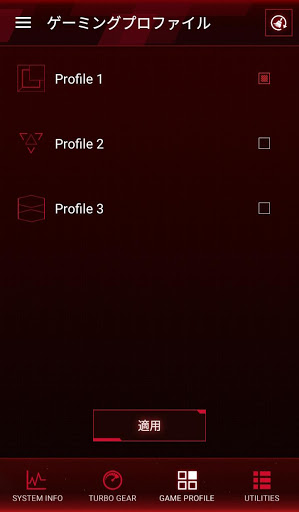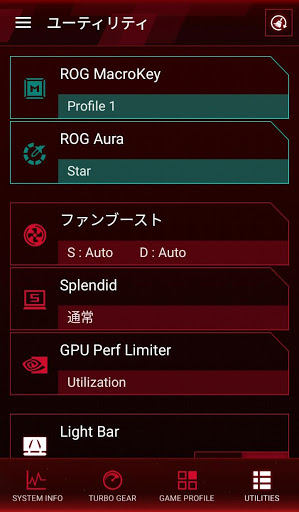 - ゲームプロファイル: ゲームを起動する前に、ROGアプリの設定をワンクリックで実行。