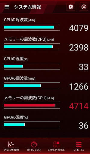 - システム情報をリアルタイムで表示(CPU/ GPU周波数、電圧、温度等)