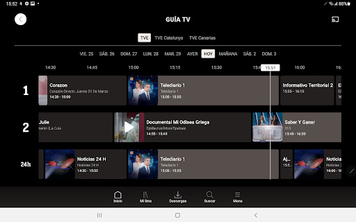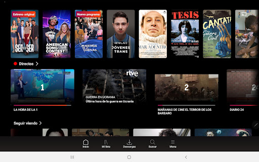 - RTVEプレイ、オンデマンド、ダイレクト、RTVE:1、2、テレディポート、プレイズ、チャンネル24時間のすべてのコンテンツにアクセスします。