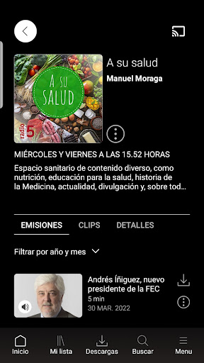 - RTVEプレイアプリケーションからテレビにコンテンツを送信して、それを大きく見る。