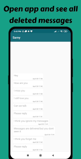 回復された削除されたメッセージは、送信者を知らずにユーザーの削除されたWhatsAppメッセージを回復します。削除されたすべてのメッセージは、回復された削除されたメッセージによって読み取ることができます。削除されたテキストメッセージ、画像、ビデオも表示できます。 whatsappを削除したメディアファイル 一箇所で別途表示します。
