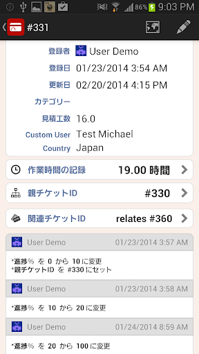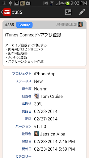 RedmineのWEBで操作している基本機能(チケット登録、更新、参照)を、モバイルでも簡単にできます。