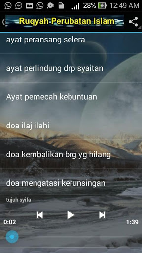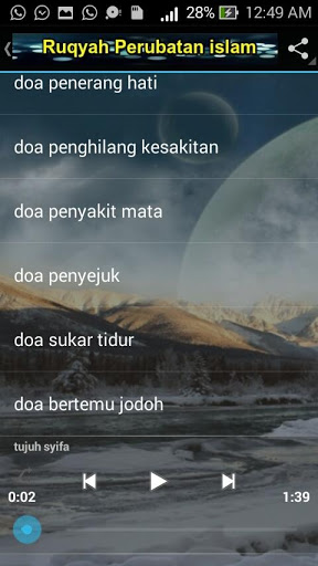Penambahan MP3 bacaan doa dan ayat ruqyah bagi memudahkan lagi proses menghafal doa dan ayat ruqyah mengikut jenis penyakit.