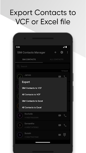 アプリを使用すると、SIMカードからデバイスに複数の連絡先をインポートでき、デバイスの複数の連絡先を削除できます。BR> SIM連絡先をエクスポートできます&デバイスの連絡先はExcelシートまたはVCFに連絡します。