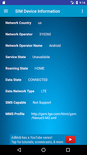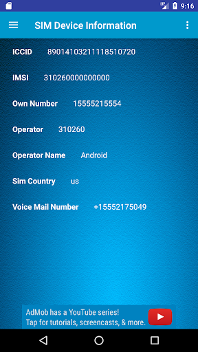 ICCID、IMSI、独自の番号、オペレータ、オペレータ名、SIMの国、ボイスメール番号
