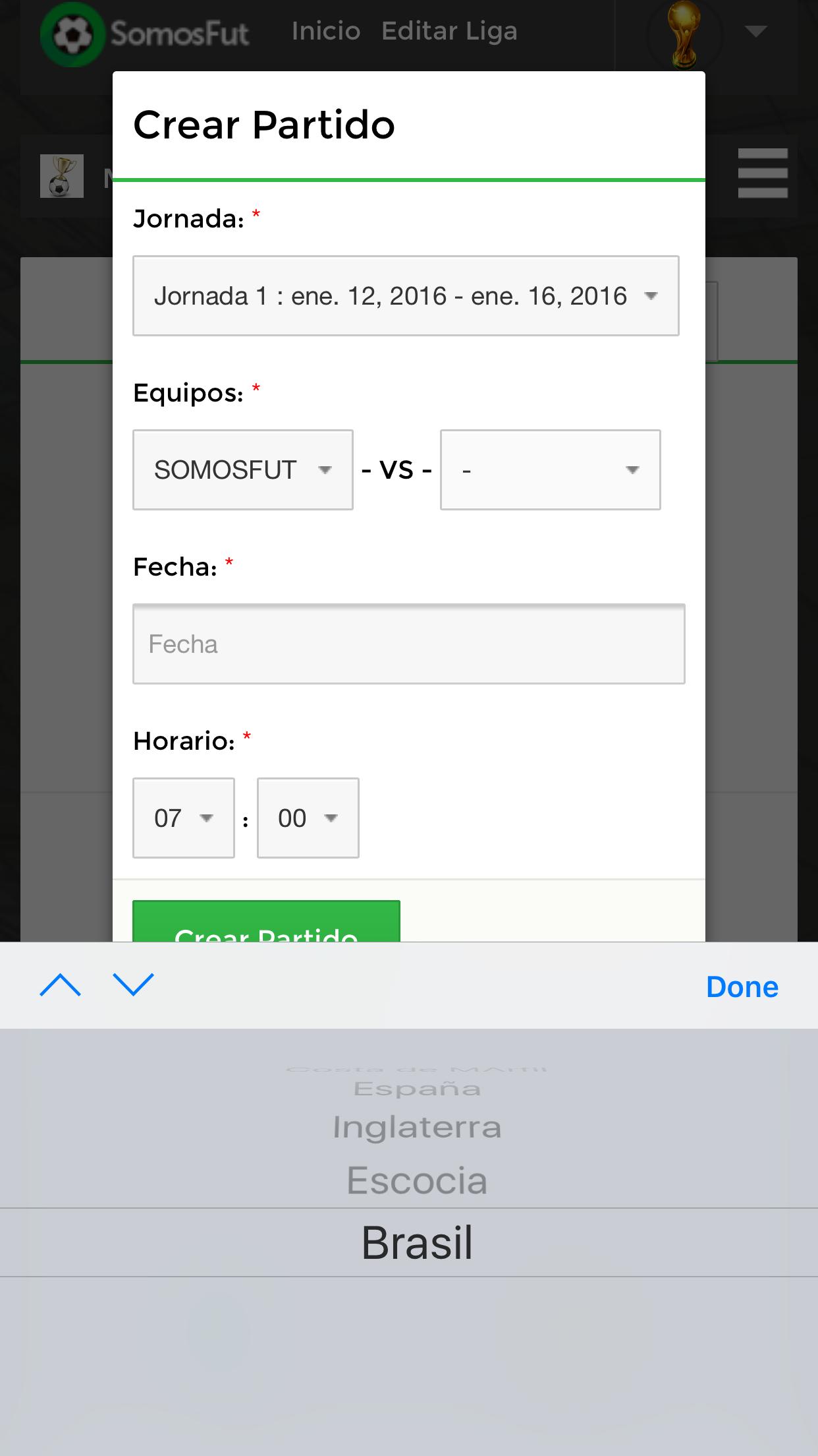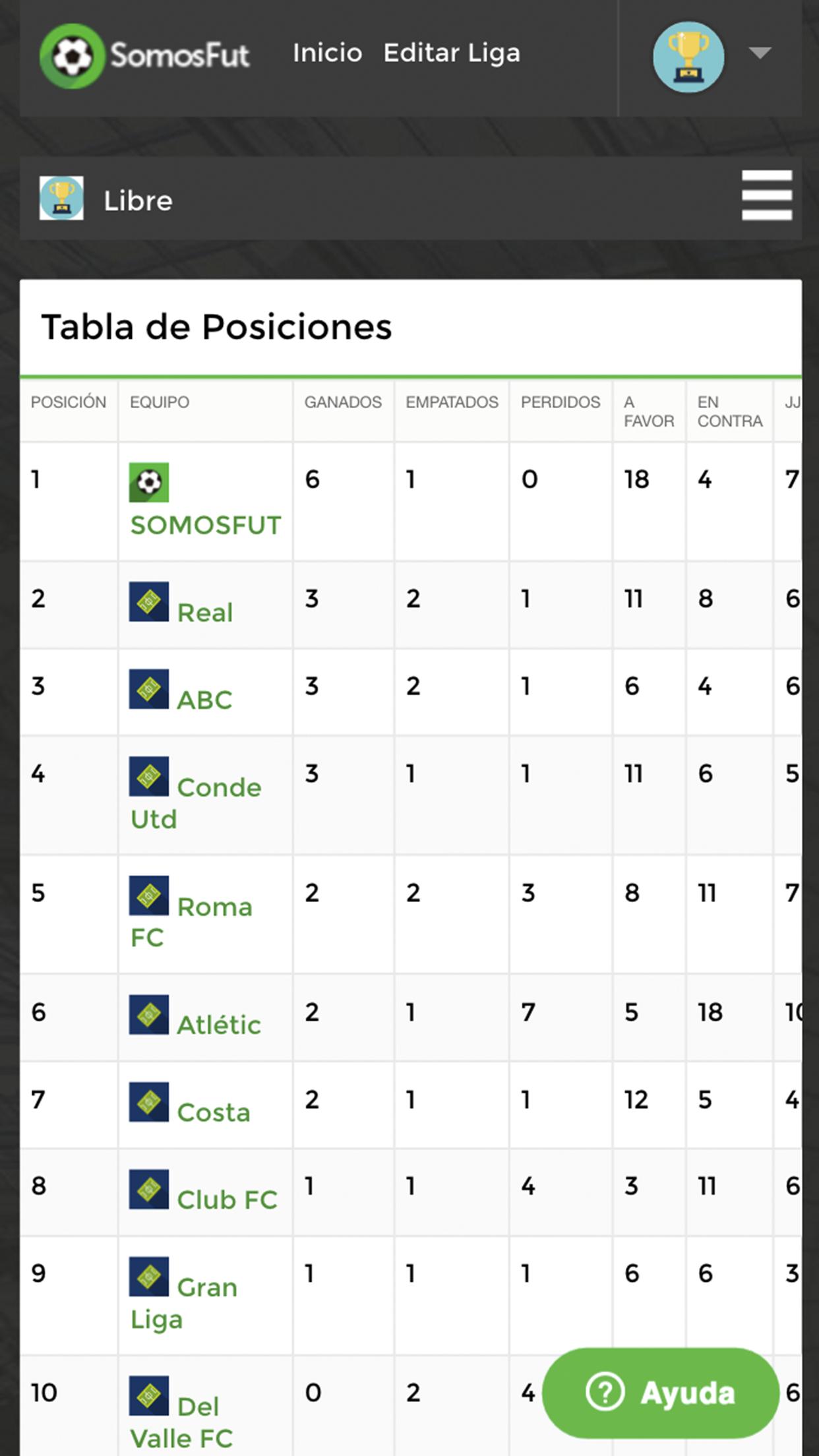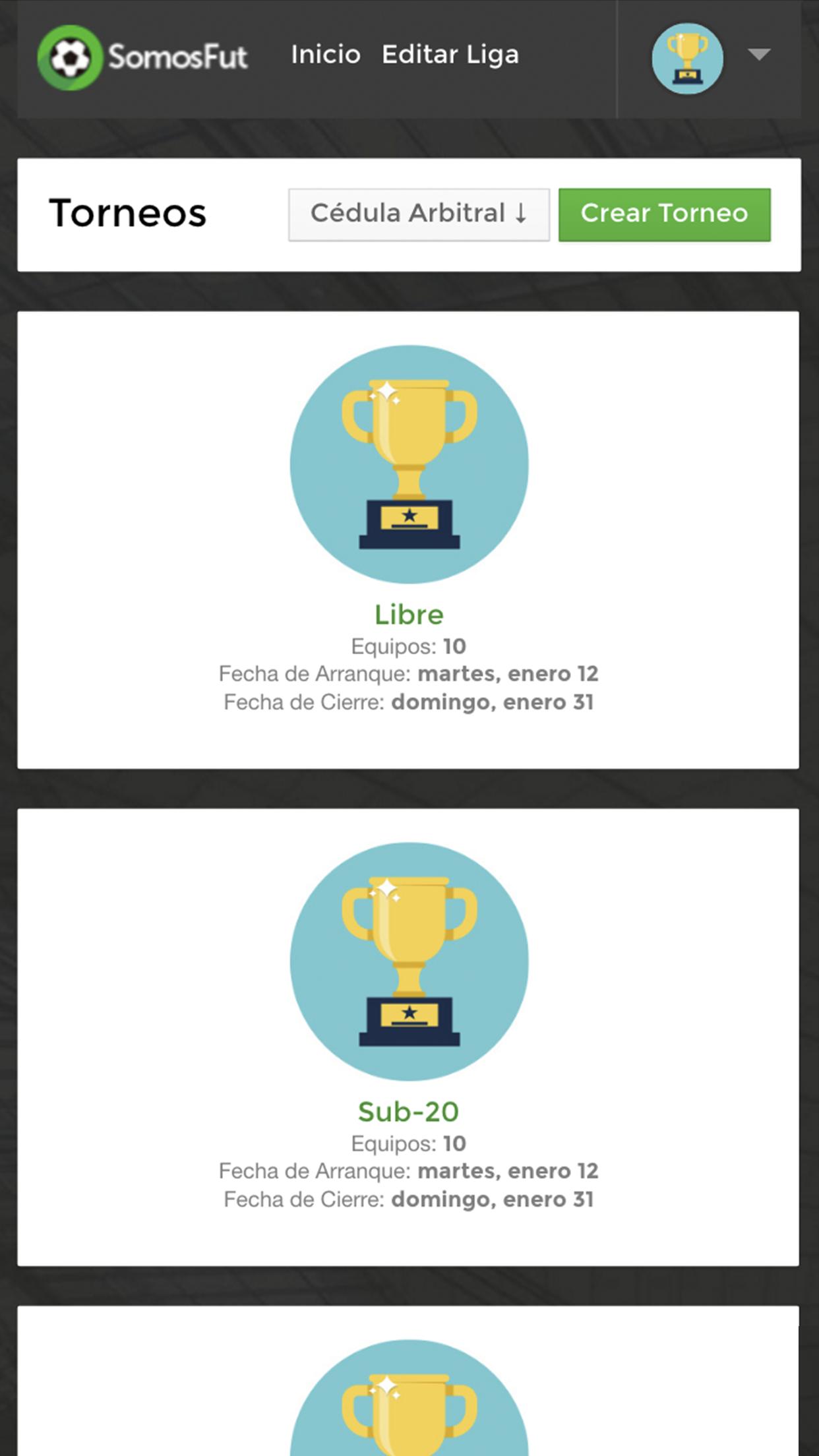 Aplicación para administradores de Ligas SOMOSFUT