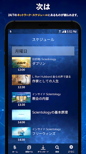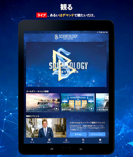 - ライブ・テレビ:あなたのデバイスから24時間、Scientologyネットワークをご覧頂けます。