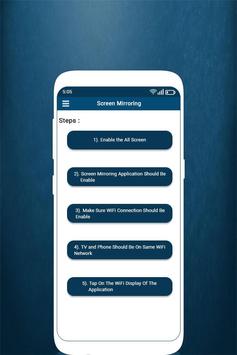 Screen Mirroring App will assist you to scan and mirror your android phone or tablet screen on smart TV/Display (miracast enabled ) or Wireless dongles or adapters.