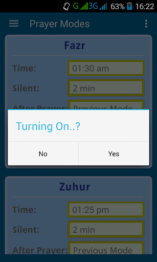 Using this app, you can make your phone automatic silent at Salah time. If you set times of Salah, then the phone will be silent at the time and it will return back to the specified mode (vibrate / normal) after the period of time.