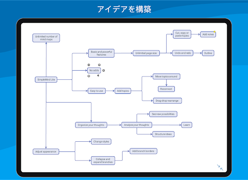 マインドマップで自分の考えを整理したり、物事を覚えたり、新しいアイデアを生み出すことができます。私たちは、いつでもどこでもマインドマップを作成できる、綺麗で使いやすいアプリを創りました。