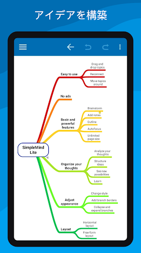 『SimpleMind』はスマートフォンとタブレットの両方に最適化されています。いくつかの機能は新しいバージョンの Android でのみ利用できます。