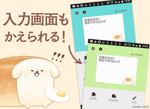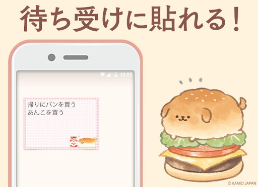 本アプリでは、待受け画面に異なる複数のメモ帳ウィジェットを貼り付ける事ができます。待受け画面へ設置した各ウィジェットをタップする事によりアプリを開いてください。 それぞれに異なるメモ内容を書き込め、異なるデザインを適用する事が出来ます。不要となったメモは、ウィジェットをは削除するだけで手軽に処分できます。付箋紙がテーマのシンプルなアプリです。この「犬 パン」のキャラクターで待受けを可愛く、美味しそうにカスタマイズしましょう。