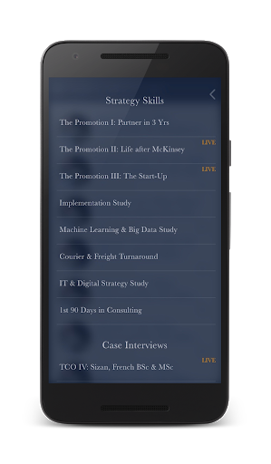Watch ex-McKinsey, BCG et al partners mentor real applicants for case interviews. Also learn all the skills of McKinsey & BCG consultants by following detailed episodes as ex-partners develop a corporate strategy, an IT & Digital strategy, a turnaround strategy, market entry strategy, M&A strategy and more. In other training programs follow the detailed steps taken to promote a senior manager to equity partner in 3 years, build a new luxury startup and help a former McKinsey associate succeed in corporate life.