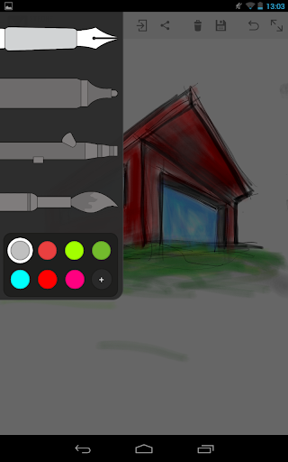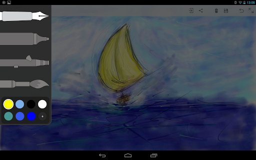 Press you finger or your capacitive stylus harder on the screen and a thicker line will be drawn. It’s that simple. Although Stroke is intended to be used using a capacitive stylus, sometimes you’ll feel the need to use your fingers: go for it, that’s the “Artists way”.