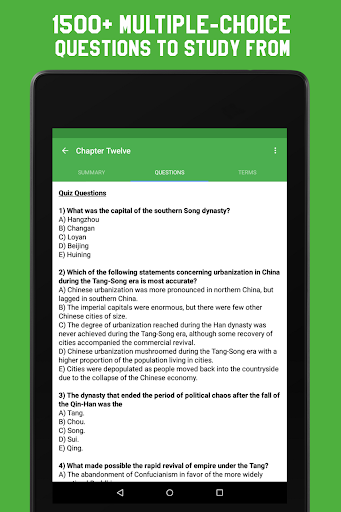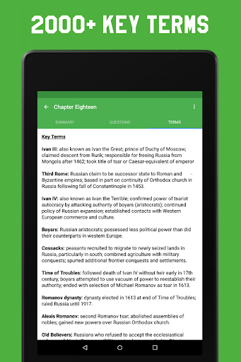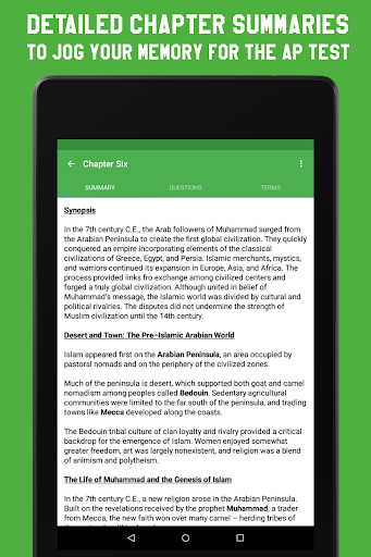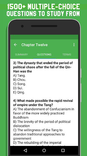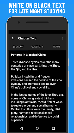 Study AP World History provides you with a comprehensive compilation of every chapter's summaries, quiz questions, and key terms. If you're behind on a chapter or don't remember something, just review the brief summary. It even comes with a Night Mode that's easy on the eyes for the really tough nights.