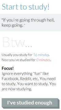 You want to study. But you *always* get stuck on social media or playing games. Not any more. Studyfocus is your virtual mom that reminds you of your homework and motivates you to do it. When you have studied enough Studyfocus rewards you. If you skip to study, it punish you.
