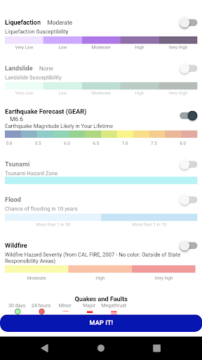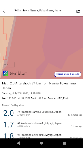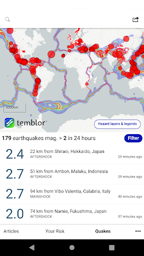 Temblorは、最高の公開データとメソッドを使用して、米国のどこにでも機能します。私たちの目標は、怖がって、なだめる、または雪が降ることなく、地震のリスク「本物」を作ることです。 Temblorを介して移動するのは、迅速で楽しく、そして簡単です。情報ボタンの計算、推定値、およびデータソースを説明します。