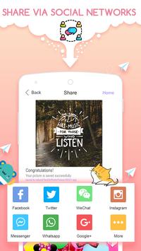 lets you easily add cool Texts, Quotes, Captions and Stickers to your photos. And share it with your friends in the world via Instagram, Facebook, Twitter etc or instant messaging applications. Wow...your design will get more "like" and "followers" from your all friends in the world!