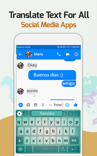 この素晴らしいテキスト翻訳者のキーボードを使用すると、あなたが望むどんな言語にも入力したばかりのテキストを翻訳しましょう。大規模なリストから希望する言語を決定することができます。編集しているテキスト全体を翻訳したい場合、または選択した数の単語だけを翻訳したい場合は、テキストを入力して翻訳をタップして設定から希望の言語を選択してください。これで、翻訳のためにテキストをコピーして貼り付ける必要はありません。他の言語の友達とチャットするために、このシンプルだが素晴らしいテキスト翻訳者のキーボードを使用してください。この翻訳者のキーボードアプリで100歳以上の国の人々と話すことができます。