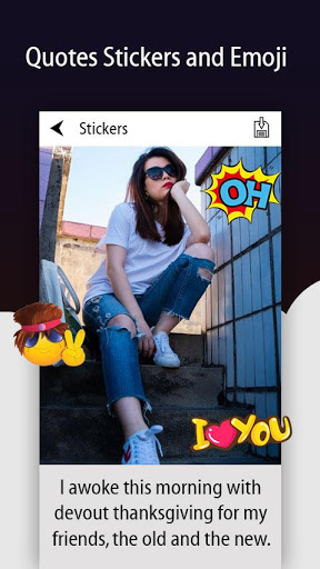 このアプリはInstAquoteを作成するのに最適なアプリです。それに書き込まれた引用で画像を作成することができます。そのため、背景画像に複数のテキストを追加することができます。その他の画像を背景画像に追加することができます。アプリに提供されているステッカーを追加することもできます。