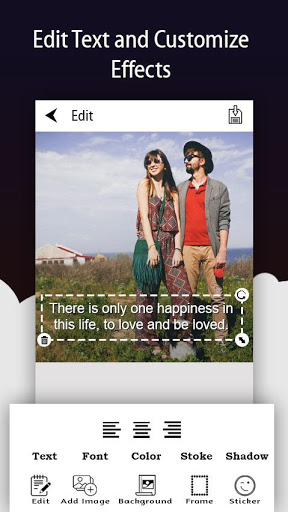 には、編集時に費やすのに十分な時間がない場合は、それをさらに簡単にするためのランダムな引用符があります。 。アプリ内のランダムな引用符は、それを共有するかすぐにそれをダウンロードすることができる場合は、自動的に生成された引用符をスワイプすることができます。自動生成された引用符を編集する場合は、編集ボタンをタップしてください。