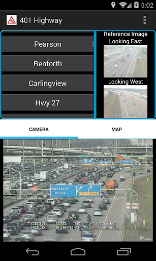 Using Google maps and integrating that into each camera view allows you to quickly determine whether you should avoid the highway.