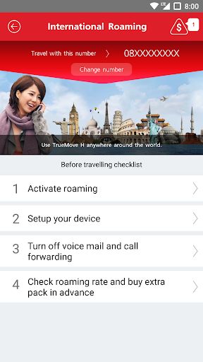 TrueMove Hローミングは、TrueMoveとTrueMove Hのお客様に必要な国際的なローミング情報を提供するアプリケーションです。アプリケーションは便利な機能と情報を提供しています。:世界中のどこでも、ローミングパッケージを節約して購読する