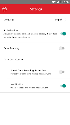 - データ使用量の確認:データのローミングの使用方法をカウントし、ネットワークがローミングしている間にラッチされていることを知っている