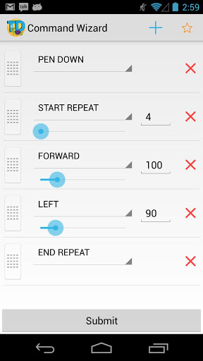 - FORWARD 100 LEFT 90 FORWARD 60 RIGHT 30 BACK 10 LEFT 10 FORWARD 100