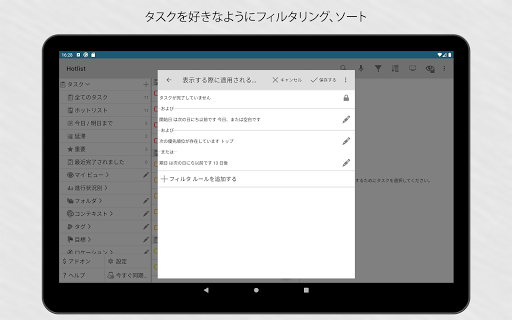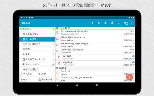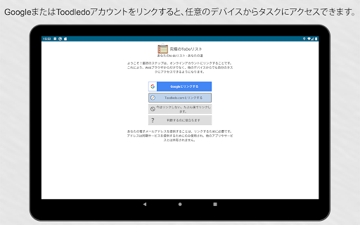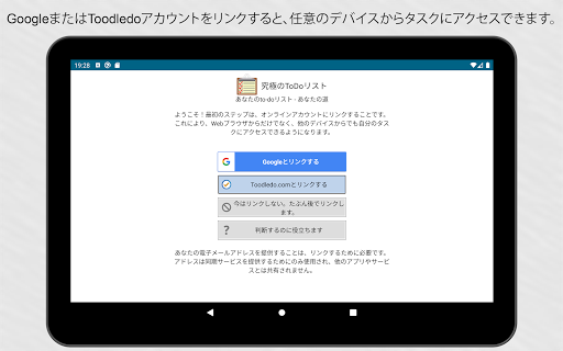 同期状態を維持します。 GoogleやToodledo.comアカウントにアプリをリンクすることで、デバイスが完全に同期されます。同期は自動的に実行されます。