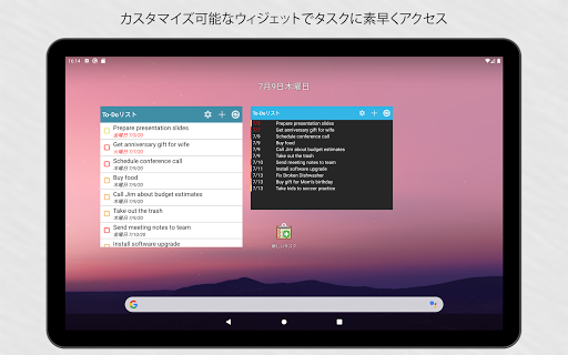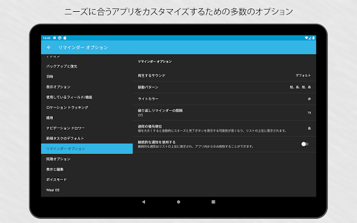 忘れすのはもうストップ。 高度にカスタマイズ可能なリストやリマインダーを使って、重要な事を見逃すことを防止します。お望みであれば、タスクが完了するまで、アプリが繰り返し通知をお届けするように設定もできます。アラームは、時間もしくはロケーションに関連付けて設定できます。