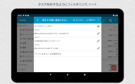 高度なフィルタ、並び替え、表示オプションは、任意のフィールドでタスクをフィルタリング、最高3つまでレベルで並び替え、表示を適切に調整し、必要な項目だけを表示します。